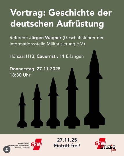 fordern über 140 Gewerkschafterinnen und Gewerkschafter, überwiegend Funktionäre oder Betriebs- bzw. Personalräte, die Gewerkschaften und ihre Vorstände auf, sich unüberhörbar für Friedensfähigkeit statt „Kriegstüchtigkeit“ einzusetzen, für Abrüstung und Rüstungskontrolle, Verhandlungen und friedliche Konfliktlösungen. Für Geld für Soziales und Bildung statt für Waffen.