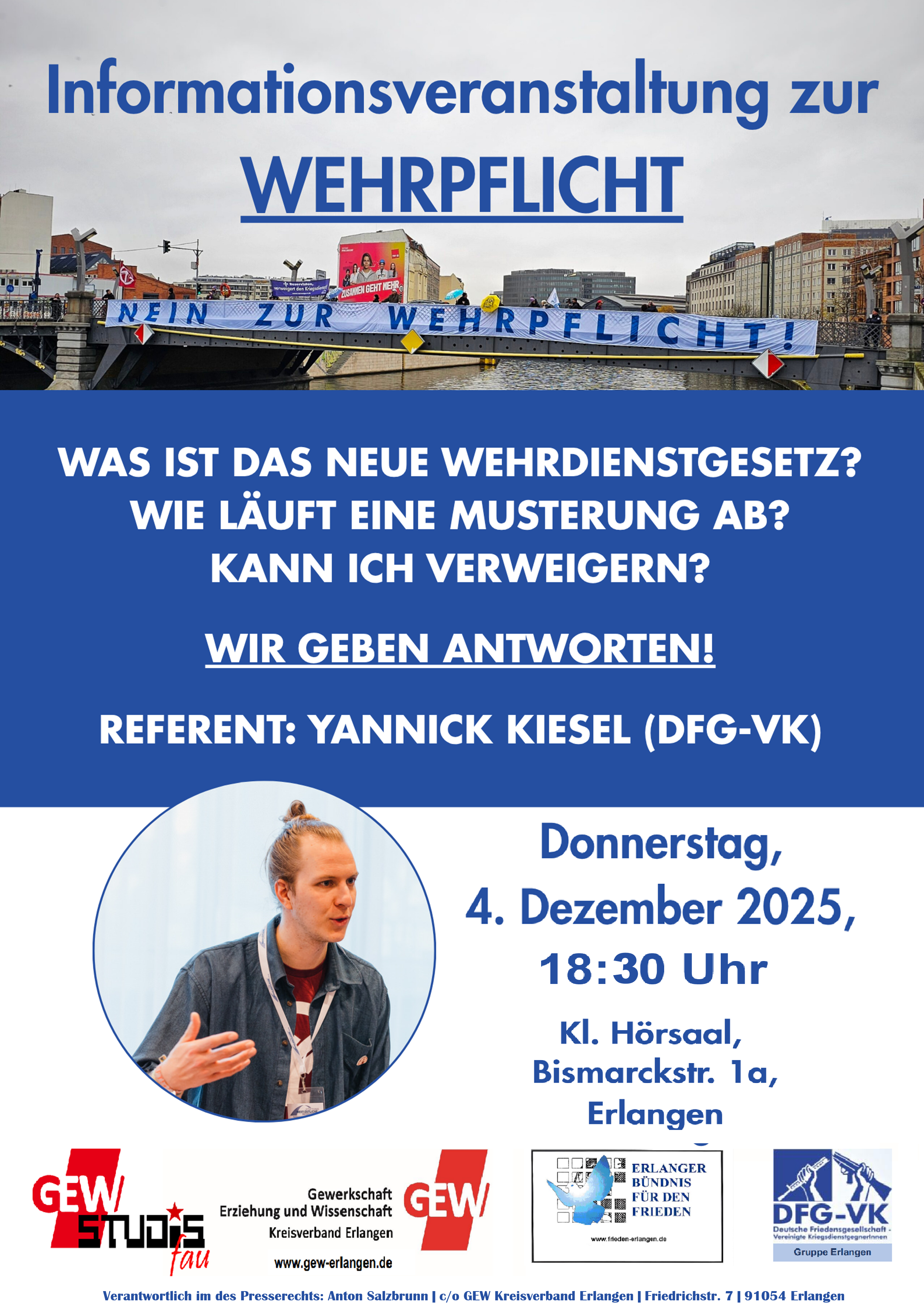 Vortrag von Rudi Friedrich (connection e.V.) und einem Kriegsdienstverweigerer (aus